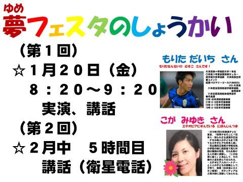 この、「夢への道」を、もっとみなさんが自分のこととして捉えられるように、後期後半には2つの授業をします。「夢フェスタ」(夢のお祭り)です。