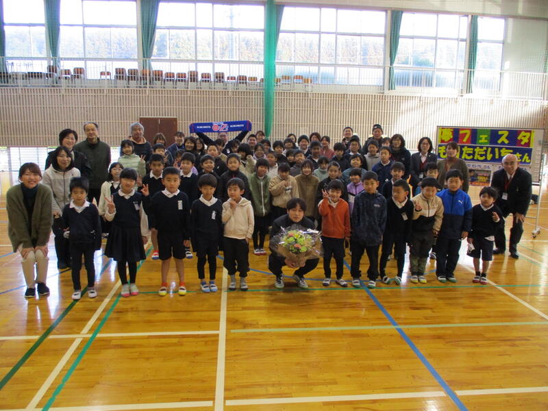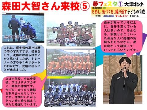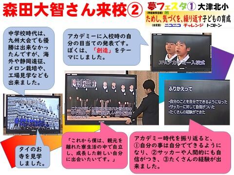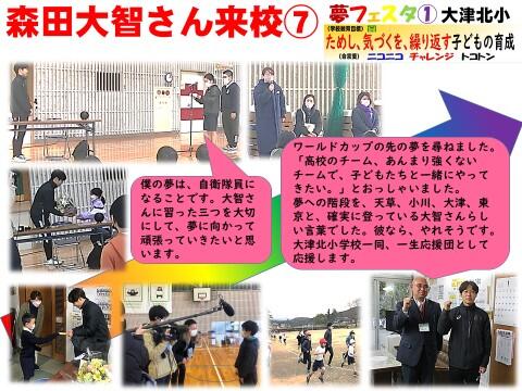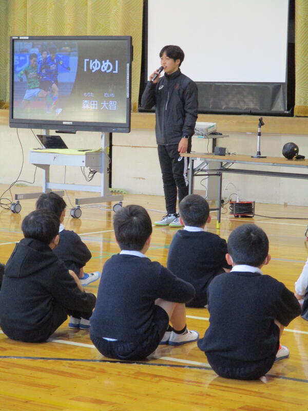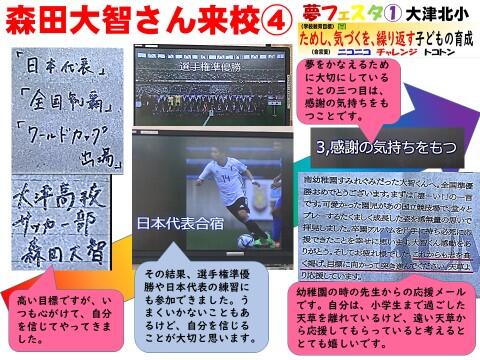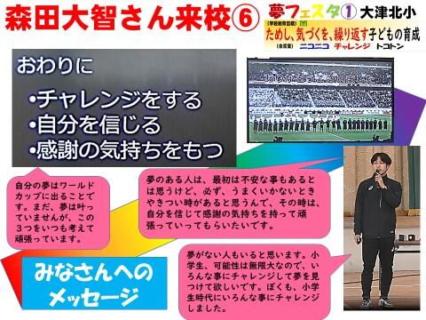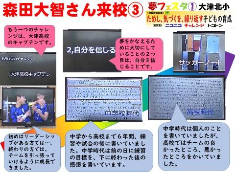 森田大智さんは、森田和歌子先生の息子さんです。去年の9月7日の全校集会で、去年の大津校高校のチームの話をして頂きました。お話では、(息子さんの代のチームは)「歴代のチームの中でも、弱小世代といわれていた」という話です。でも、「とても仲が良かった」「みんなで励まし合い、支え合っていた」というお話です。皆さんの運動会の様子と重ねてお話して頂きました。