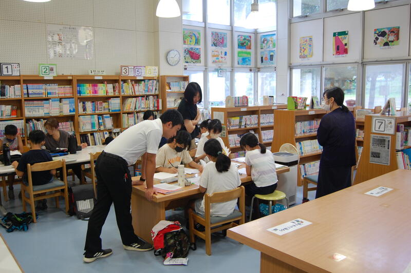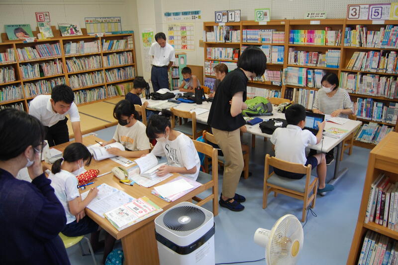 8月22,23,24日の3日間、希望する子どもたちを集めて学習会をしました。学年関係なく図書室で行い、職員は出勤している者が交代で対応しました。