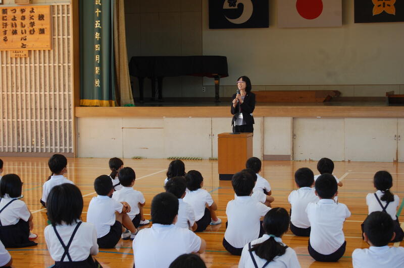 集会の後、それぞれの教室に入り、担任の先生と一緒に1時間目の授業が始まりました。