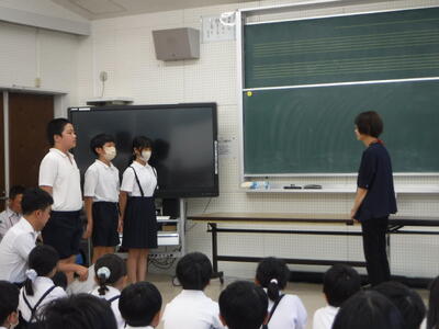 まずは、朝活動の時間を使って夏休み明け集会をしました。この時にはみんな背筋も「ピン」と伸びて、しっかり話を聞くことが出来ました。切り替えがきちんと出来るのが、北っ子のいいところです。