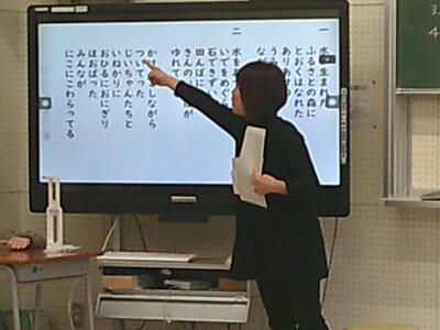 2年生は国語の時間、3年生は算数の時間。担任の先生がお休みのため、教頭先生と榎田先生が補欠に入ります。