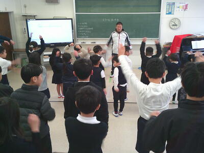 6年生は道徳の時間。過去に冬季オリンピックに出場したスキージャンプの原田選手とテストジャンパーにまつわるお話です。