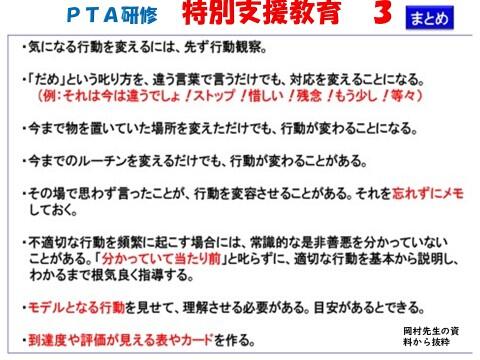 保護者の皆様も、子どものことで「気になること」が生まれた場合は、お気軽に学校までお申出ください。担任はもとより、保健主事の大塚、特別支援教育コーディネーターの三神、もちろん管理職でも結構です。丁寧にご対応させて頂きます。以下に、岡村先生のプレゼンから重要な最後の部分を抜粋してご紹介します。