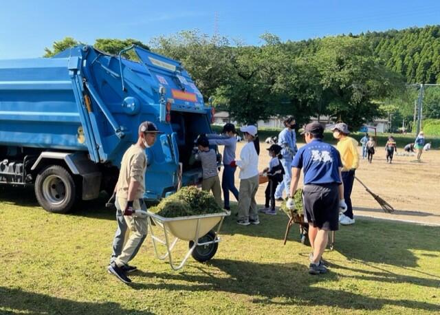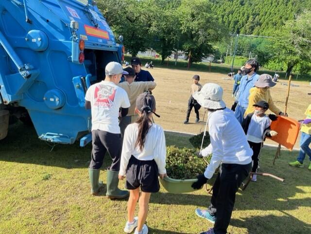 子どもたちも高学年を中心に、刈り取った草を集めたりパッカー車まで運んだりして集中して頑張っていました。
