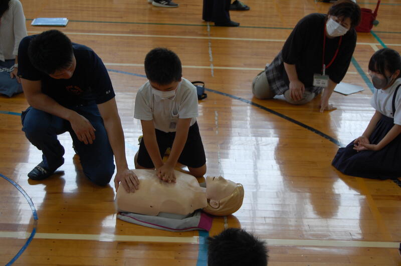 6月10日(土)2時間目はPTA親子救急救命講習会を開催しました。講師を務めてくださったのは、菊池広域連合消防署 署員のみなさまです。「自分の大切な人にもしものことが起きたら…」ということを想定しながら講習は進められました。