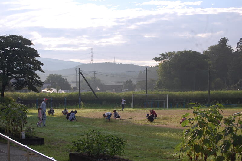 約1時間30分、草抜きや草刈りにみんなで汗を流し、子どもたちにとって安全な環境が整いました。