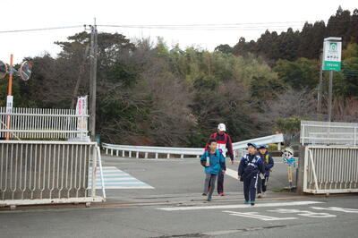 途中のチェックポイントではカードにスタンプを押してもらって、次のチェックポイントへと進みます。低学年の子どもたちも遅れずに頑張って歩いていました。