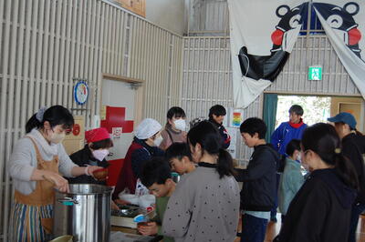 その後、お待ちかねの豚汁をいただきました。地域のボランティアの皆様にも協力していただきました。