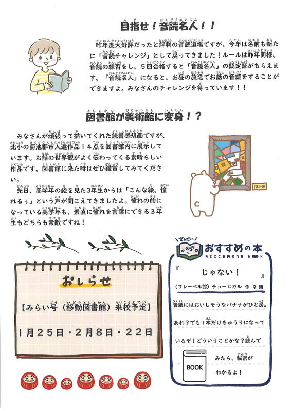 としょかんだより 全ての記事 全ての記事 カテゴリ アーカイブ 2025年12月 (0) 2025年11月 (1) 2025年10月 (1) 2025年9月 (1) 2025年8月 (2) 2025年7月 (0) 2025年6月 (0) 2025年5月 (1) 2025年4月 (1) 2025年3月 (1) 2025年2月 (1) 2025年1月 (1) 2024年12月 (1) 2024年11月 (1) 2024年10月 (1) 2024年9月 (1) 2024年8月 (0) 2024年7月 (1) 2024年6月 (1) 2024年5月 (1) 2024年4月 (1) 2024年3月 (0) 2024年2月 (0) 2024年1月 (0) 2023年12月 (0) 2023年11月 (0) 2023年10月 (0) 2023年9月 (0) 2023年8月 (0) 2023年7月 (0) 2023年6月 (1) 2023年5月 (1) 2023年4月 (0) 2023年3月 (0) 2023年2月 (0) 2023年1月 (0) 2022年12月 (0) 2022年11月 (0) 2022年10月 (1) 2022年9月 (2) 2022年8月 (0) 2022年7月 (0) 2022年6月 (1) 2022年5月 (1) 2022年4月 (1) 2022年3月 (1) 2022年2月 (1) 10件 1件 5件 10件 20件 50件 100件 としょかんだより 11月号 投稿日時 : 11/21 学校サイト管理者 図書館だより R7年11月HP用.pdf としょかんだより 10月号 投稿日時 : 10/27 学校サイト管理者 図書館だより R7年10月HP用.pdf としょかんだより 9月号 投稿日時 : 09/22 学校サイト管理者 図書館だより R7年9月HP用.pdf としょかんだより 7月号 投稿日時 : 08/28 学校サイト管理者 図書館だより R7年7月HP用.pdf としょかんだより 6月号 投稿日時 : 08/28 学校サイト管理者 図書館だより R7年6月HP用.pdf としょかんだより 5月号 投稿日時 : 05/22 学校サイト管理者 図書館だより R7年5月HP用.pdf としょかんだより 4月号 投稿日時 : 04/24 学校サイト管理者 図書館だより R7年4月HP用.pdf としょかんだより 3月号 投稿日時 : 03/10 学校サイト管理者 としょだより R7年3月.pdf としょかんだより 2月号 投稿日時 : 02/21 学校サイト管理者 としょだより R7年2月.pdf としょかんだより 1月号 投稿日時 : 01/28 学校サイト管理者 としょだより R7年1月.pdf 123 »