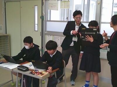 6年生は大津町や学校を紹介するプレゼンの制作と発表練習に励んでいました。ん?!声が大きい!!そう言えば、昨日の廊下での挨拶もすごく感じよかったし、男女が協力してたなあ・・・と感じさせられました。