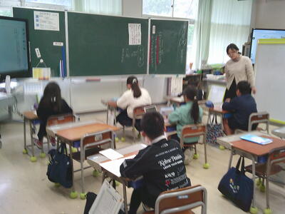 3年生はモチモチの木の学習。その中でも「嬉しい・楽しい」を別の言葉に大変身!!という表現力を高める授業に取り組んでいました。3年生は反応が豊かです。ノートを書く速さも早くなってきています。丁寧な濃い字が書ける児童も増えてきました。
