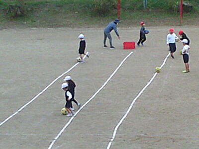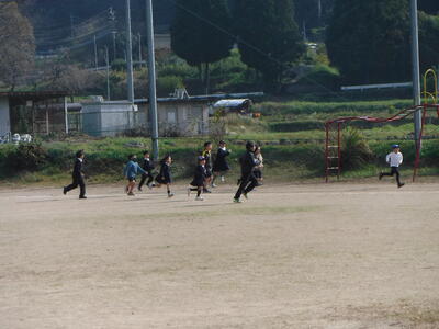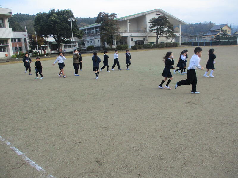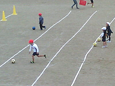 1~2年生は体育でサッカー遊び。走る走る走る走る・・・。毎回運動量がしっかりある体育で元気はつらつです。