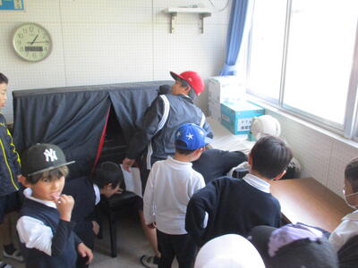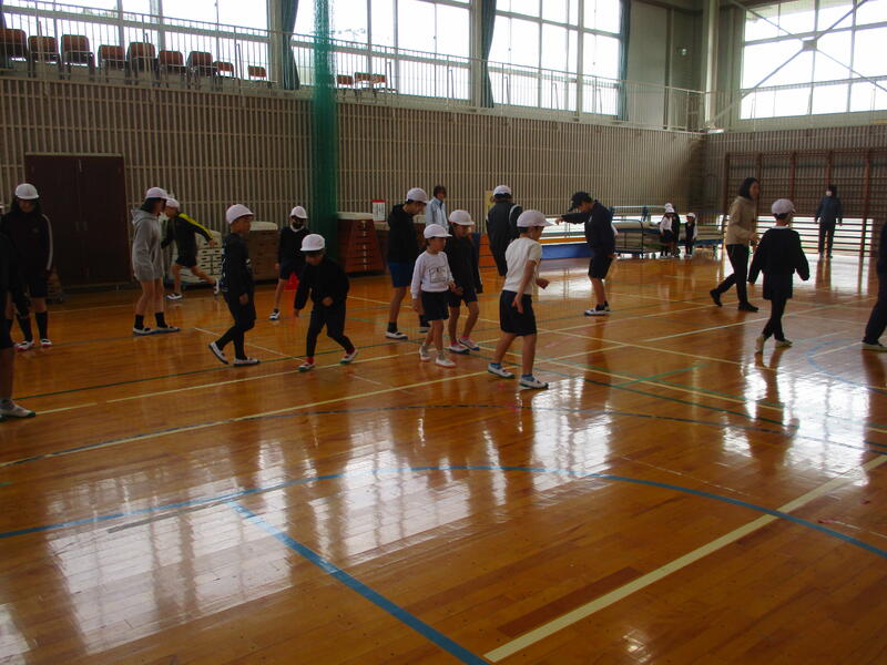 教室にいた児童、廊下にいた児童、教室を移動していた児童と様々でしたが、それぞれが放送を聞いて、落ち着いて避難訓練ができていました。