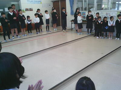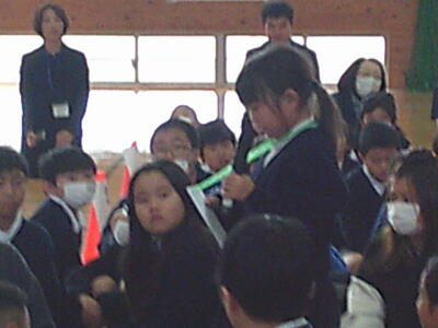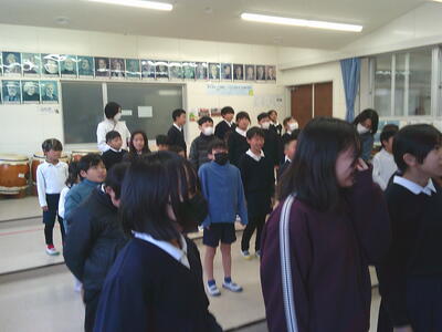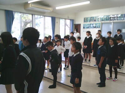 大勢が集まると気合いの入った叫ぶ歌声になりがちですが、きれいな裏声で一生懸命に歌う子どもたちでちょっぴりじんわりとしました。この仲間で一緒に学習できるのは、後70日あまりです。(校長 上田 玲子)