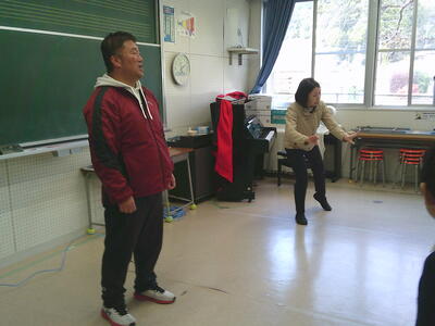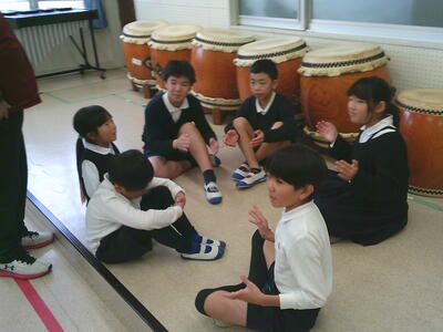 昨日は、全校体育の他、全校音楽もあり、1~6年全員で歌ったり、リズム遊びをしたりして5時間目を過ごしました。寺本教諭は音楽の専門家で、ピアノ伴奏はもちろん、声楽指導も本格的です。田中教諭も音楽をたしなまれており、田中教諭の子どもさんも本格的な歌声を磨いていらっしゃいます。まずは発声練習から。