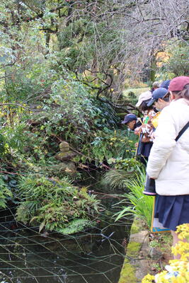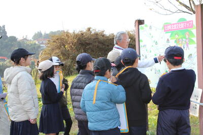 近くの木々も紅葉をし、真っ黄色の銀杏の葉っぱにも気を取られる可愛い子どもたち。寒かったけど、本物を見るって感動が大きいですね。学習発表会でこの学びも出てくるかもしれません。(校長 上田 玲子)