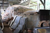 つくしの里のすぐ近くにあり、中を開いていただいたら、どおおおんとたっくさんカライモが入っているコンテナが貯蔵されていました。約1000個のコンテナが貯蔵されているとのことです。