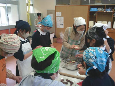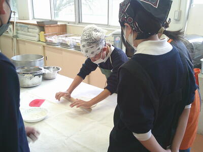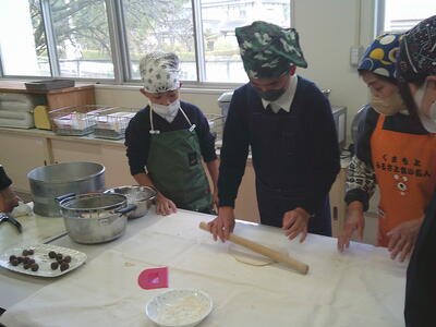 本日は、大津町の「食の名人」の方々が本校に来校され、いきなり団子作りの出前授業をしていただきました。