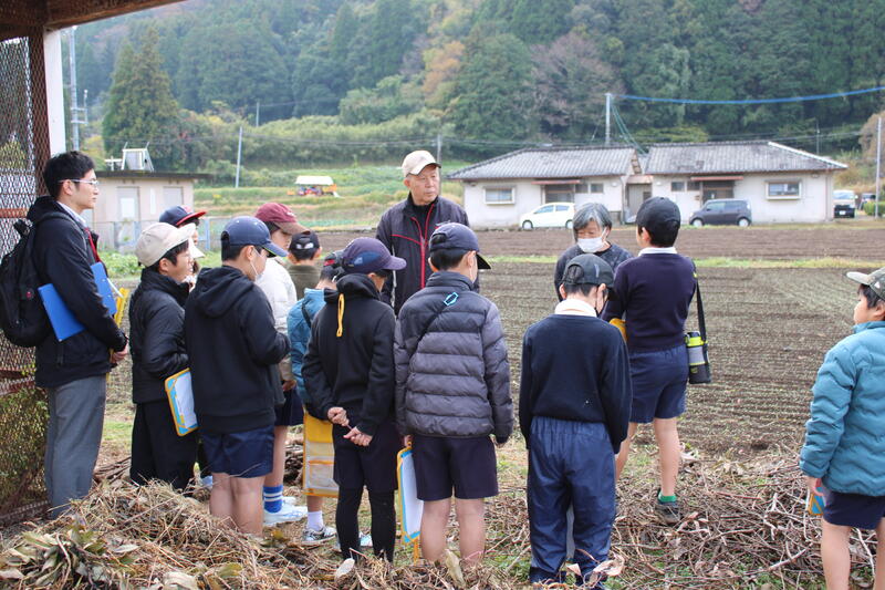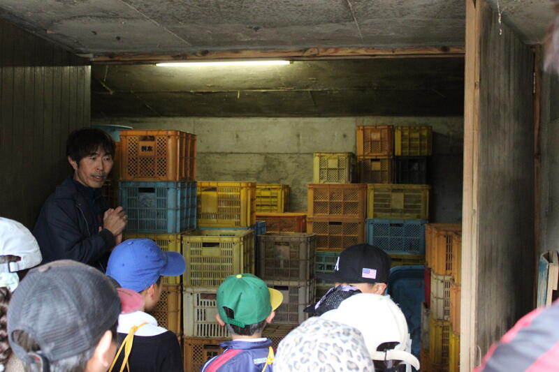 本日は、2・3年生が芋苗植え、芋掘りでお世話になった古庄さんの芋の貯蔵庫に見学しに出かけました。