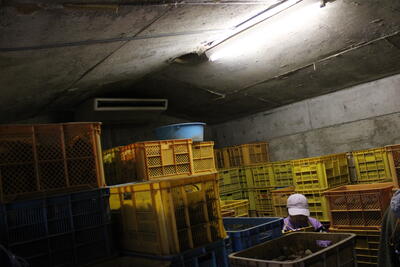 一定の温度(14~16度)に保たれ、光が入らないように貯蔵し、長くて半年ほど貯蔵されているそうです。