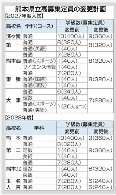 令和7年度の入試より、子どもたちが受験する高校の人数が変更になりました。