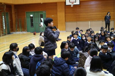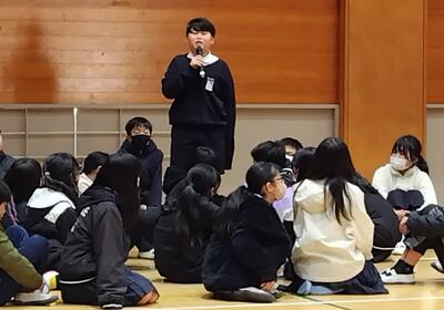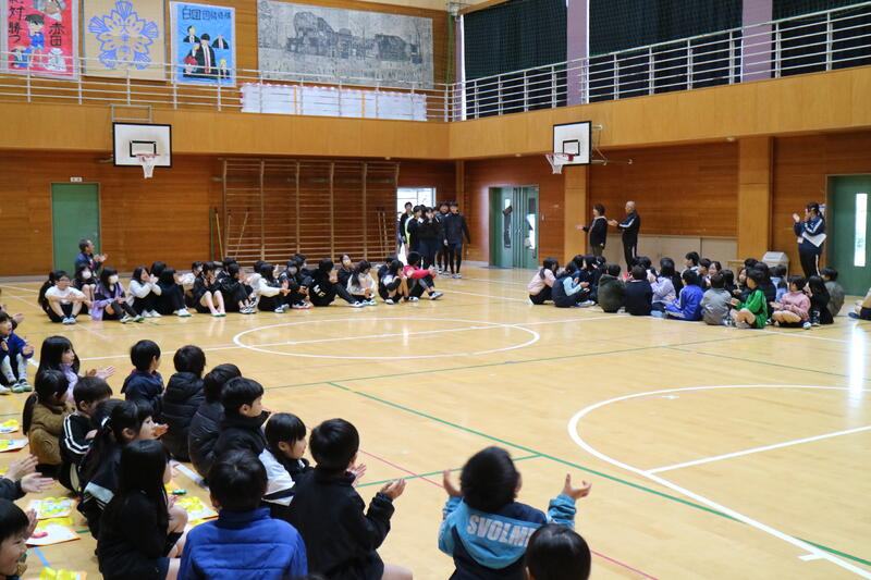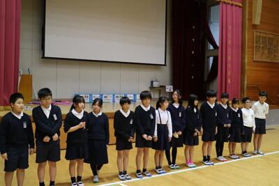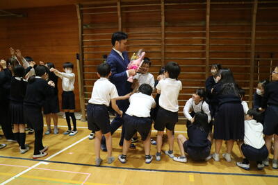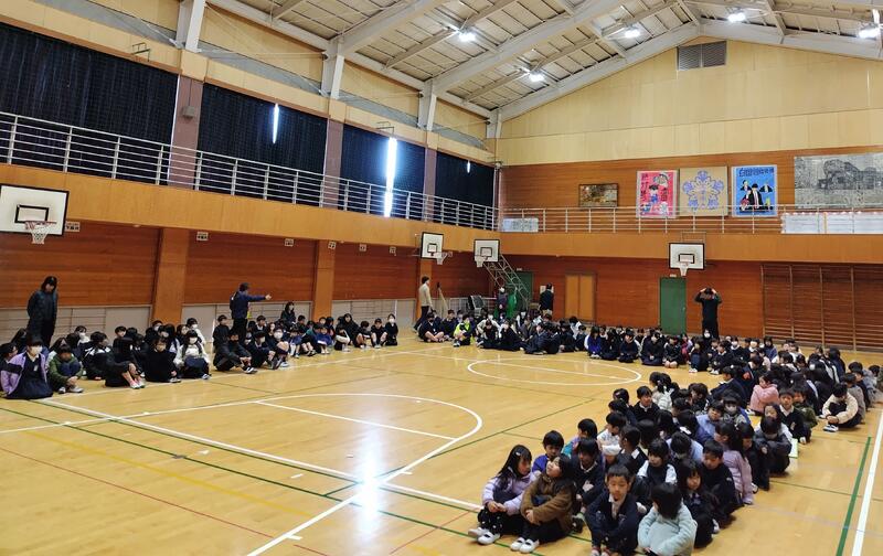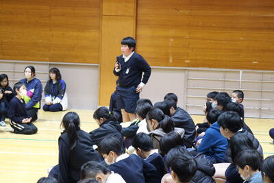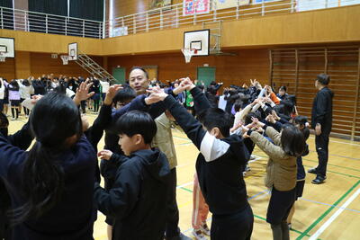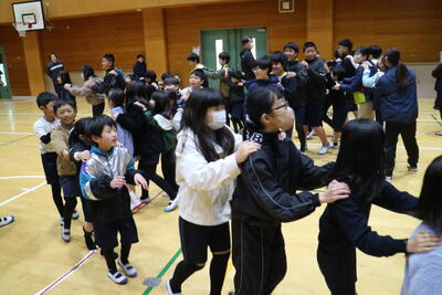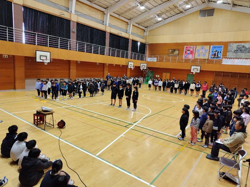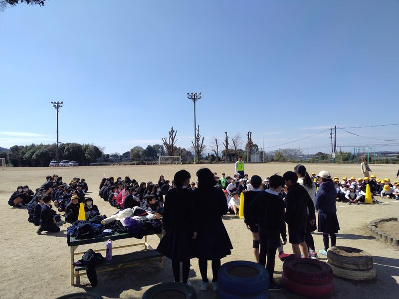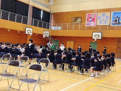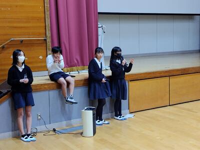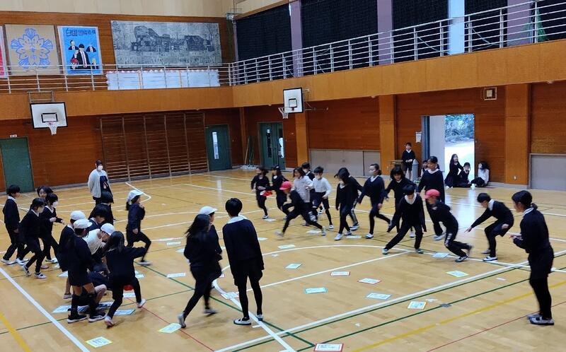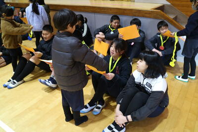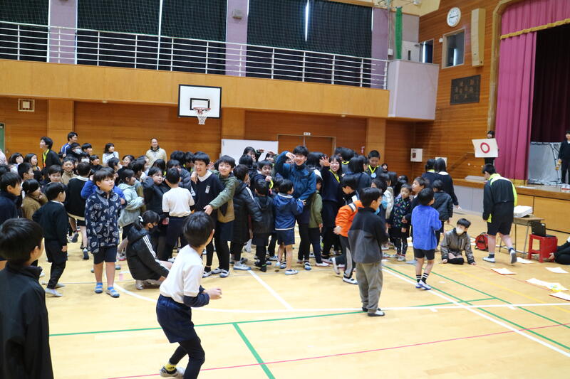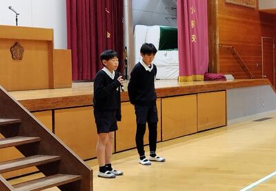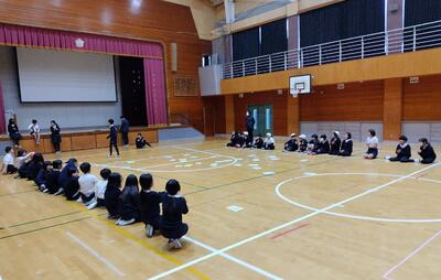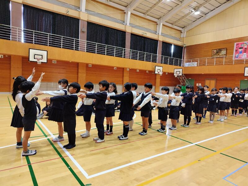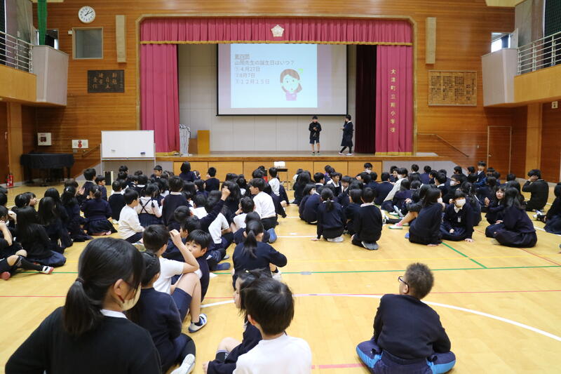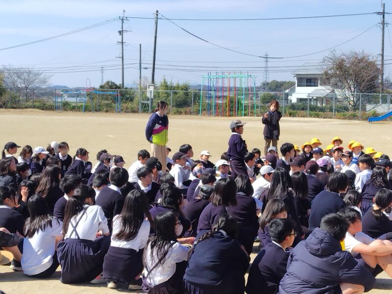 今日も、6年生が全校生徒に呼びかけ、なかよしウィーク2日目を開催しようとしていました。
