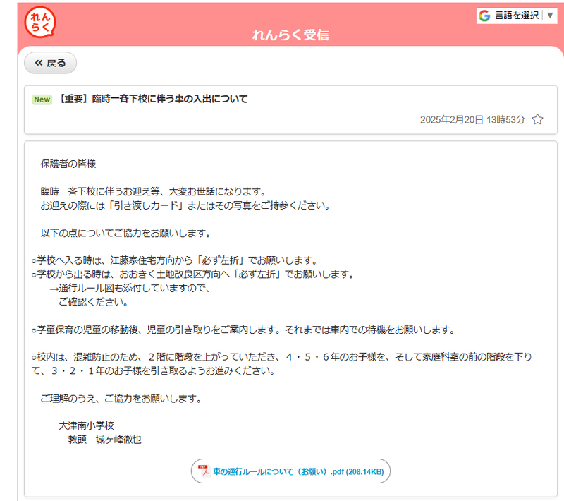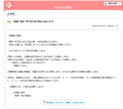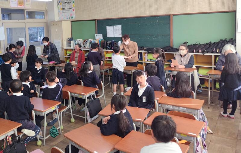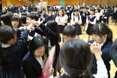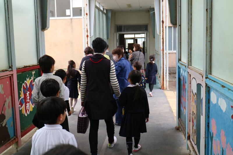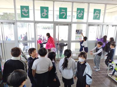 帰り際、たくさんの子どもたちが、校務員さんをはじめ、支援員さん、先生方に声をかけて下校していました。