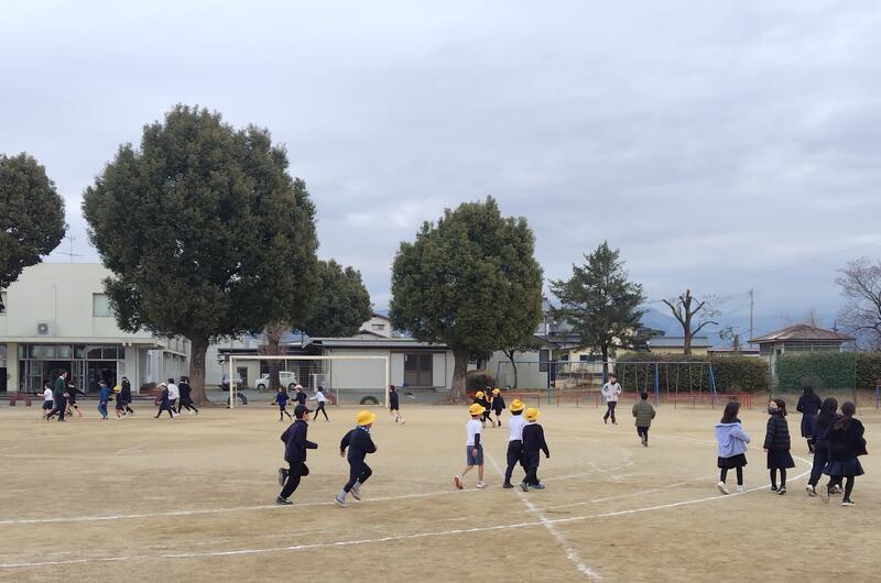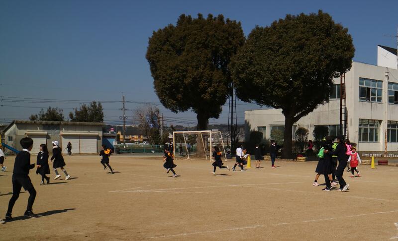 南小を満喫して冬休みを迎えようと、たくさんの子どもたちが運動場に出て遊んでいました。