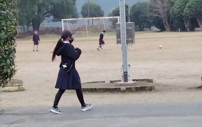 昼、高校生らしき人影が運動場に現れたので、お話に行くと、何と!中学生でした!