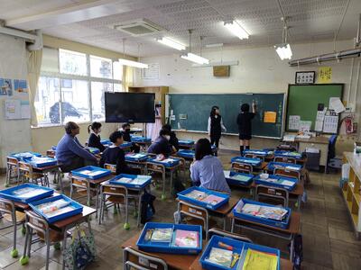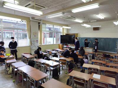 各学級では、慌ただしく新たな活動に向け、子どもたちが楽しそうに聴き入っていました。
