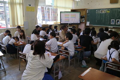 教育長をはじめ、大津町教育委員会、退職校長会、学校運営協議会の方々に来校していただき、令和6・7年度 大津町教育委員会指定「学力の充実・向上」公開授業研究会を開催しました。