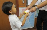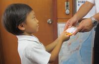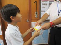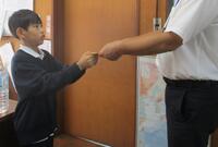 中庭で拾ったゴミを、校長室まで持って来てくれました。