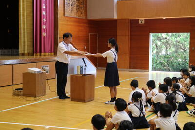 保健員会が、「くまもと 早ね・早おき いきいきウィーク」に向けて取り組んだ標語の表彰を行ったようです。