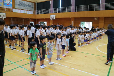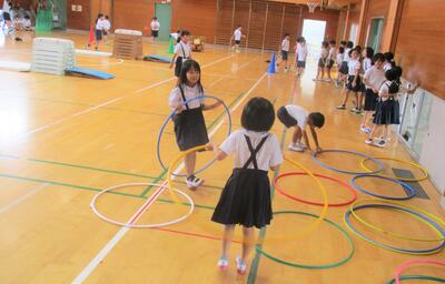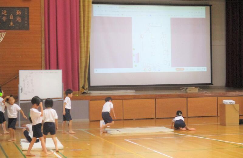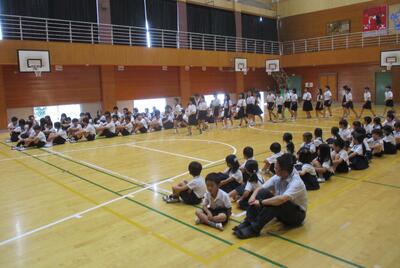 明日の研究授業に向け、昨日から体育館で授業を行っています。