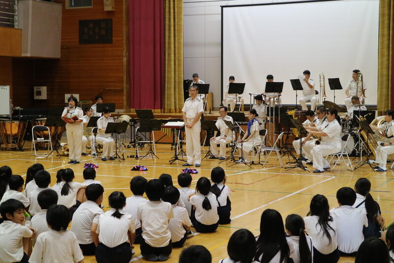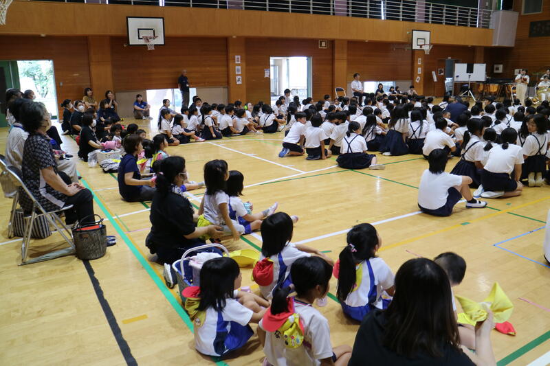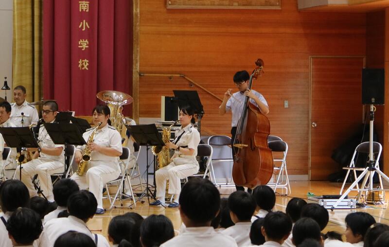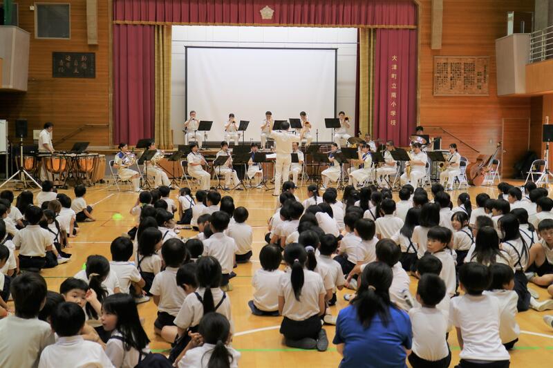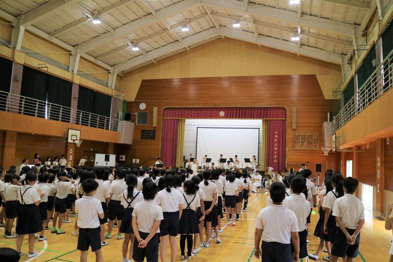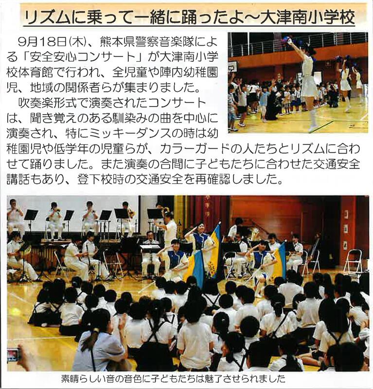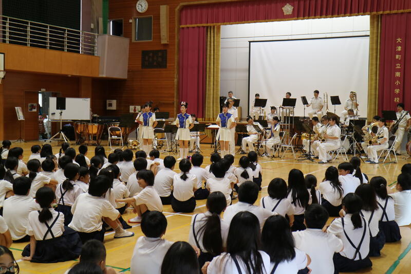 熊本県警察音楽隊の演奏で、南小の子どもたち、陣内幼稚園の園児、地域の方々、そして先生方が一体となったコンサートとなりました。