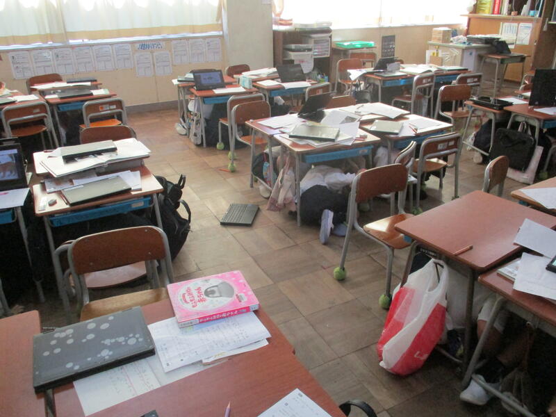 朝からエアコンが壊れ、自分たちで急きょ音楽室へ移動・・・
