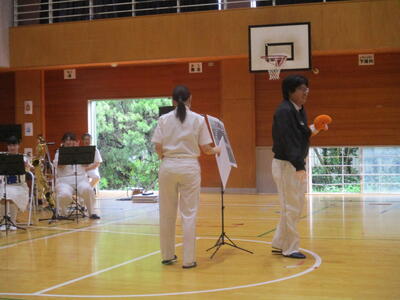 かつて熊本県警察音楽隊だった校務員さんにも登場していただき、子どもたちは度肝を抜かれました。
