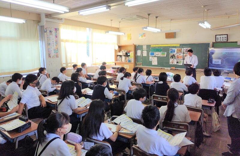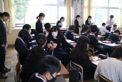 2校時、各教室を回ると、町学調「社会」社会が実施されていました。