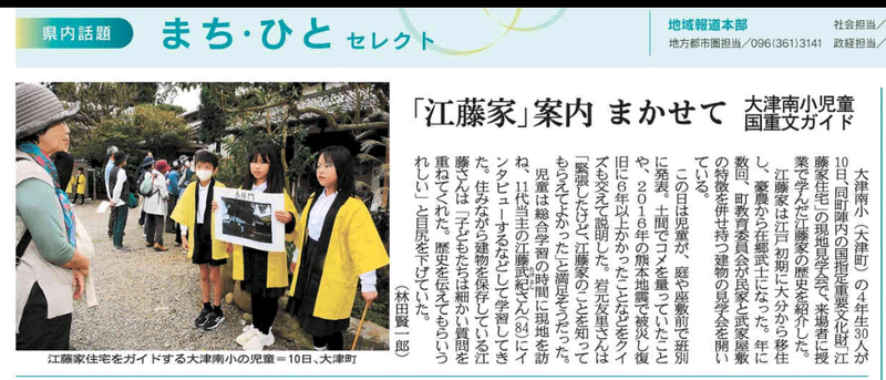 「4年生江藤家住宅ボランティアガイド」が熊日新聞に掲載されました!