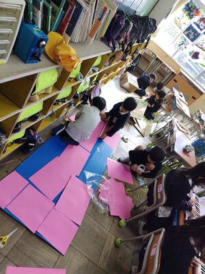 〇紙版画の授業を観ました。紙を切るだけでも上手く切れなかったことに悔しがっていたり、友だちと盛り上がっていたり、元気いっぱいな姿を見ることができました。