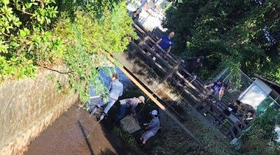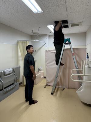 雨漏(あまも)りの箇所(かしょ)を点検・清掃していただいたとのことでした。