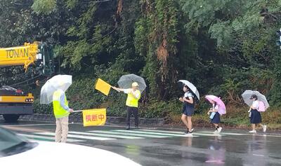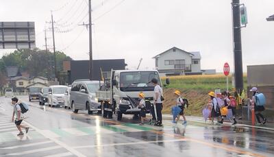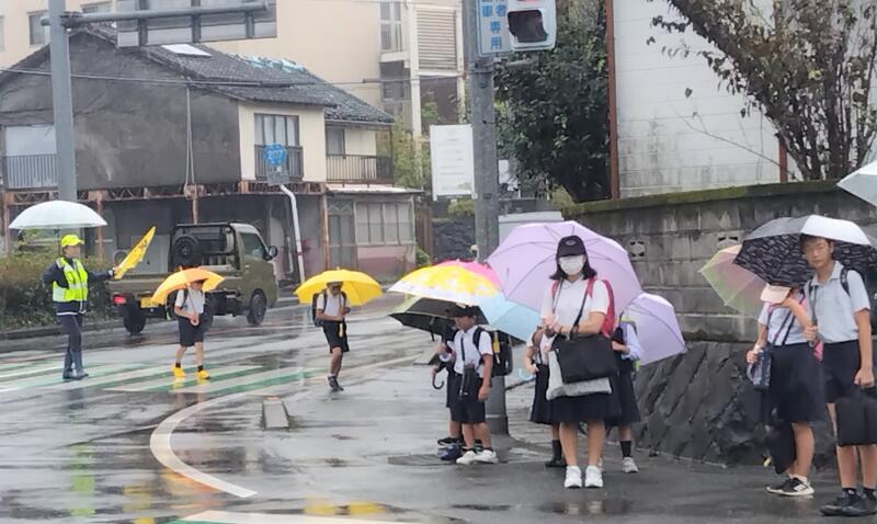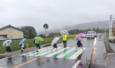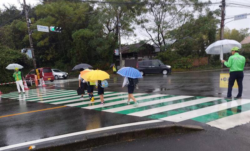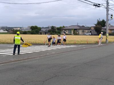 交通指導員さん方と学校協働活動推進員さんで、交通指導していただいていました。