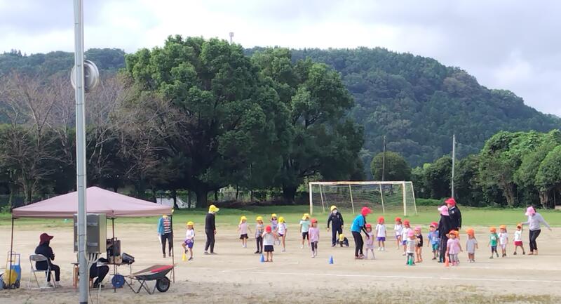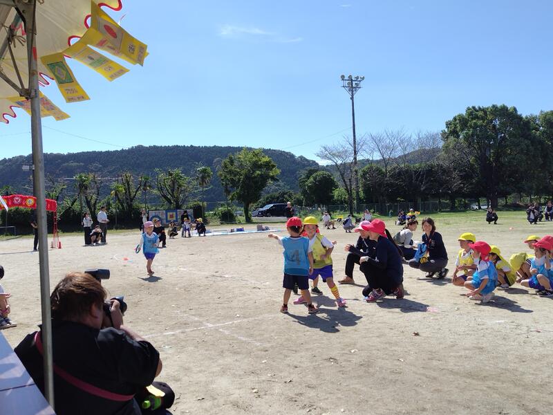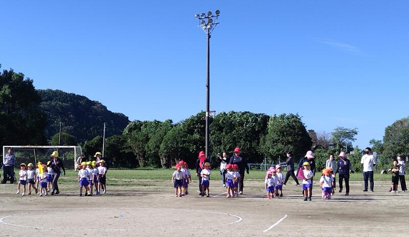 陣内幼稚園の園児たち、そして2年生の満面の笑顔が楽しさを物語っていました。