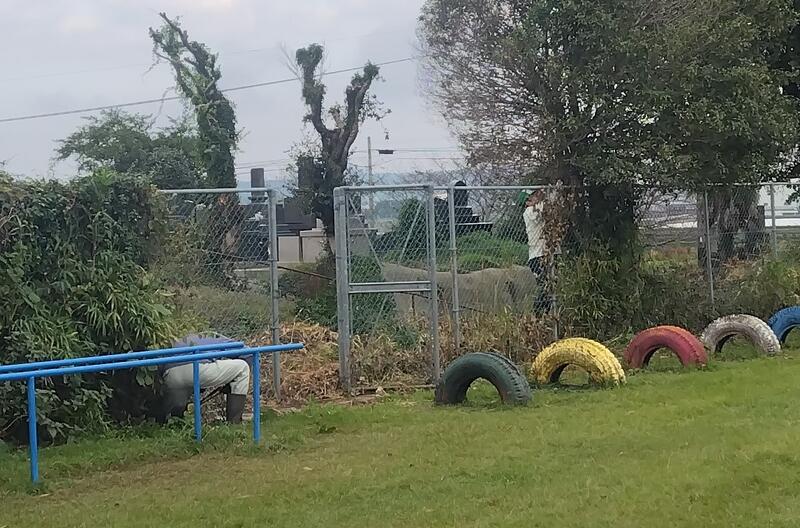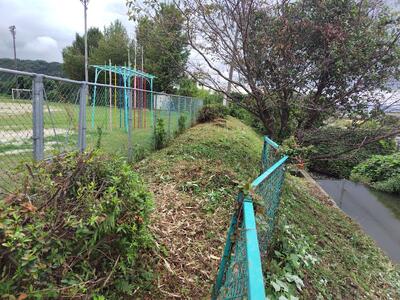 また、環境整備委員さんは、フェンス沿いの難敵(なんてき)だった竹林に、