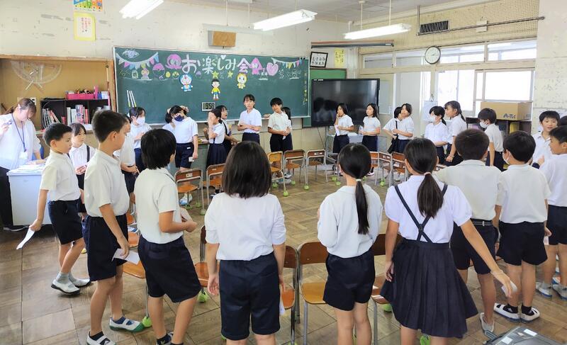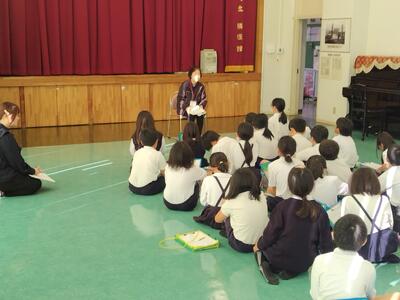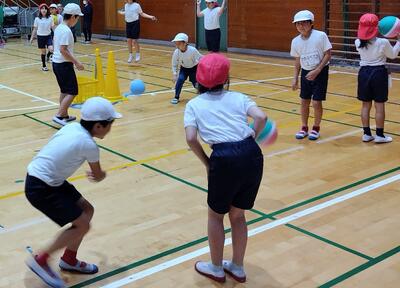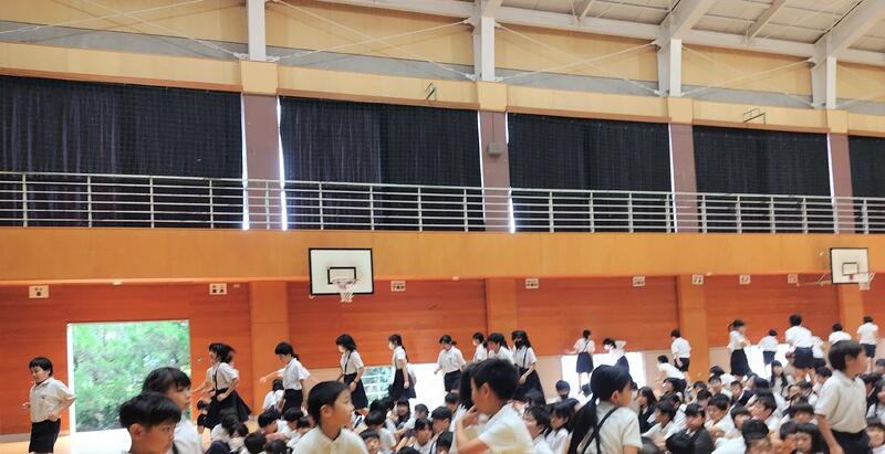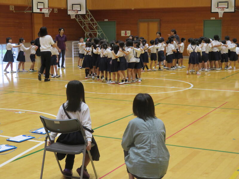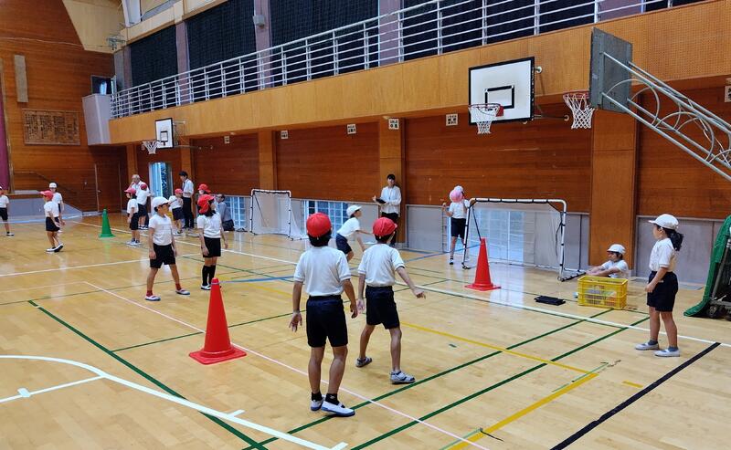 2校時、体育館からにぎやかな声が聞こえてきます。