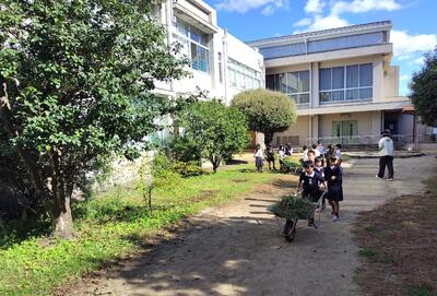 校地内のあちこちで作業をしていただいていました。