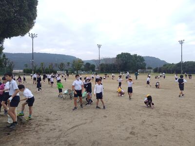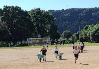 終わった後、体育委員会が、石拾いを呼びかけていますが・・・