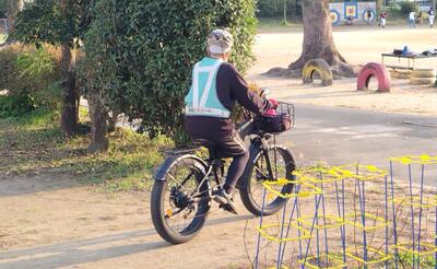 「電動機付き自転車なんです。けっこう楽に走れるんですよ!」
