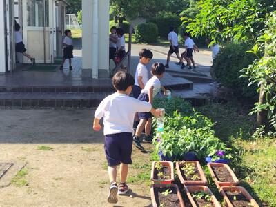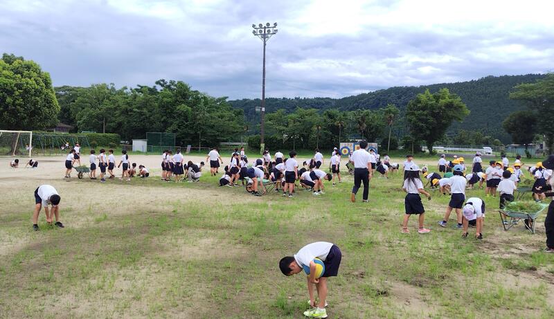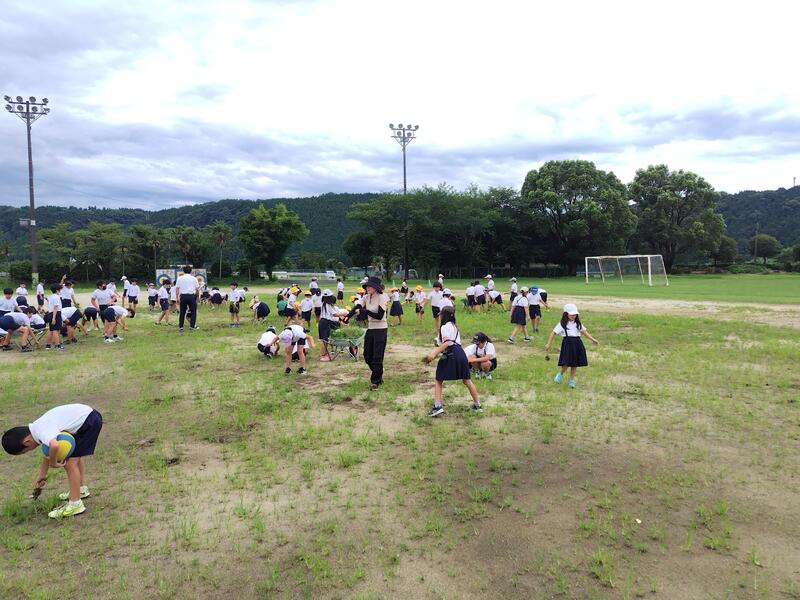 「今日の昼休み草取りキャンペーンを行います。学年対抗で行いますので、ぜひみなさん参加してください」